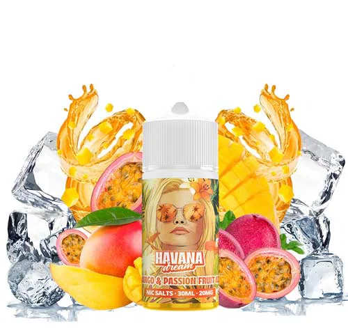 Mango Passion Fruit Ice Salt – Havana Dream, the result of the union of juicy ripe mangoes with a touch of exotic passion fruit. A flavor full of sumptuous, irresistible nuances.