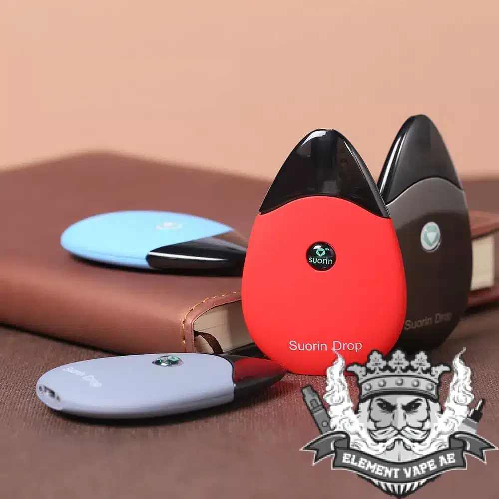 Suorin Drop Starter Kit. An ultra-compact starter kit designed for vapers looking for an easy-to-use device. Shaped like a drop of water-drop, the Suorin Drop presents a smooth feeling when held in your hands. Along with an air switch, USB charging, 2ml cartridge as well as sparkle indicator, it is a good choice to carry anywhere, all the time!