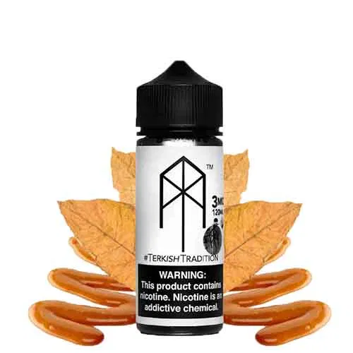 TERKISH TRADITION – M. TERK. With its distinctive blend of butterscotch and tobacco, Terkish Tradition by M.TERK E-Liquid is sure to satisfy your sweet tooth as well as give you the familiar earthiness of tobacco. This mixture of buttery caramelized sugar and tobacco is sure to hit the sweet spot for all those who crave a sweet taste along with their tobacco.